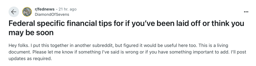 Crowdsourced advice for federal employees on RIF