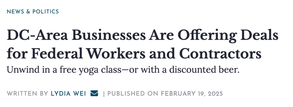 Coaching Resources: www.sparcinsights.com/ is offering executive coaching support to folks impacted by the chaos in DC. They are offering a sliding scale pay approach including no charge depending on what might work for you.